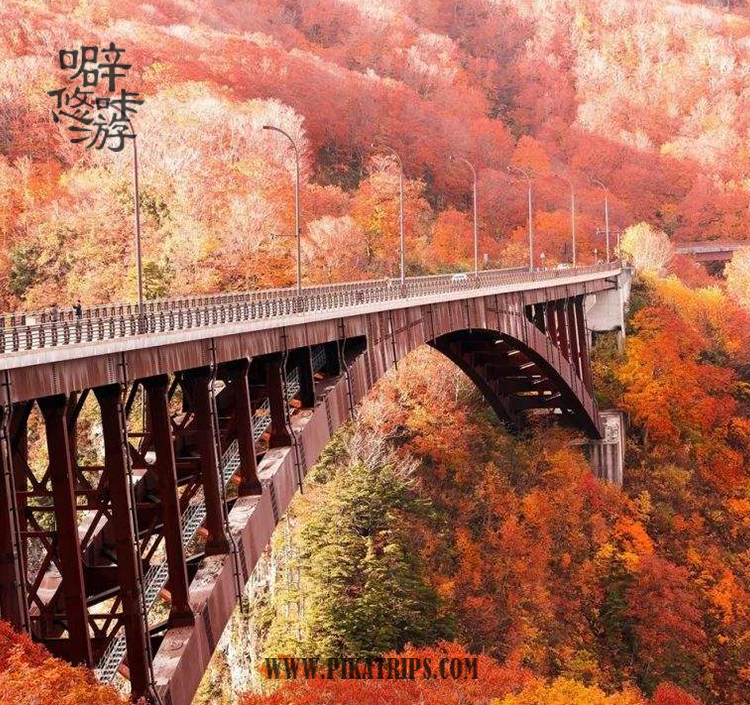 作为箱根著名景点的箱根登山铁道,在红叶季时迎来人气高点,众多观光客前来赏枫,热闹非凡。位于塔之泽至大平台之间的早川桥梁(出山铁桥)是可以同时欣赏红叶与溪谷的推荐地点。