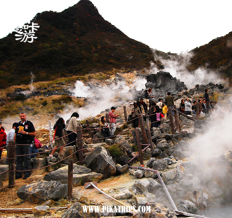 日本旅游胜地大涌谷是大约40万年前箱根火山活动的末期,神山的北山腹发生的火山大喷发形成的火山口遗迹。又称“大地狱”