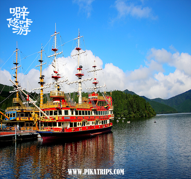 群山环绕的芦之湖上总会不定时的驶过来一条悠哉的海贼船!这海贼船主要是连结元箱根、箱根町港、桃源台港三港的定期航运船只。船种类有3种,每个设计都不一样,皆有各自的韵味。两艘海贼船相遇交错时的场景也很壮观!从元箱根港出航,再过一会儿就可以看到富士山和箱根神社全红的鸟居还有美丽的芦之湖,是绝佳的摄影景点。