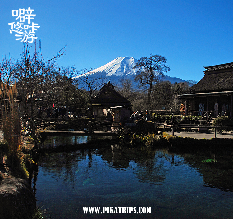 湖东南的忍野村,有涌池、镜池等8个池塘,总称“忍野八海”,与山中湖相通。